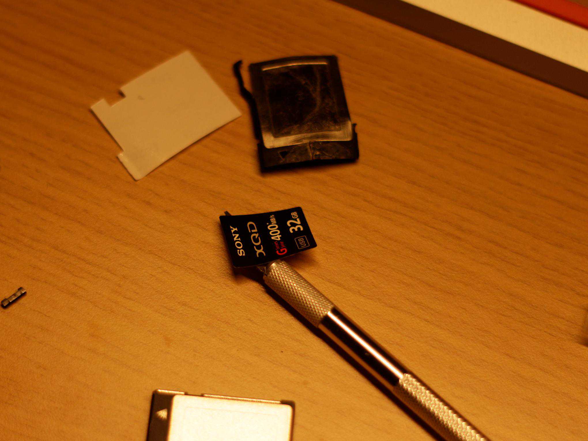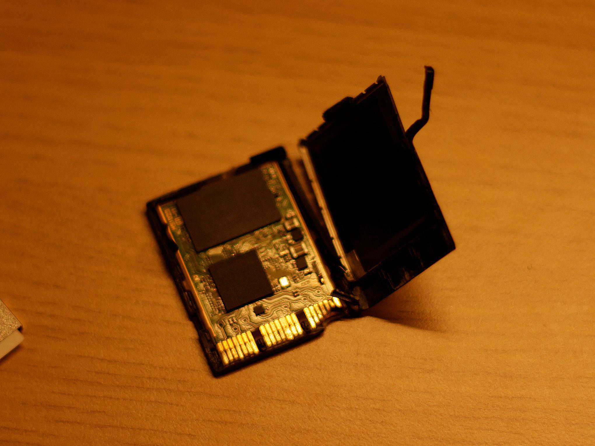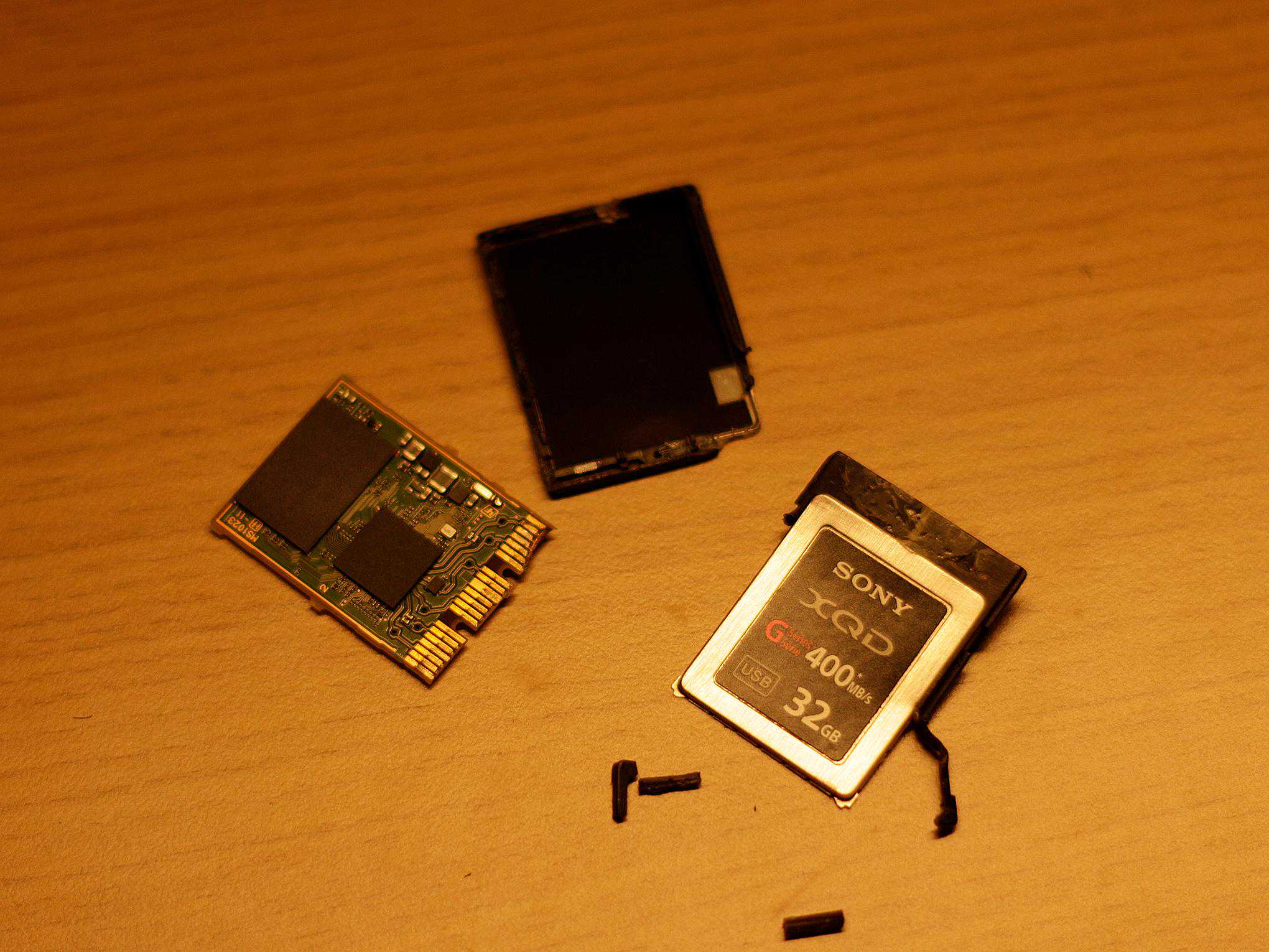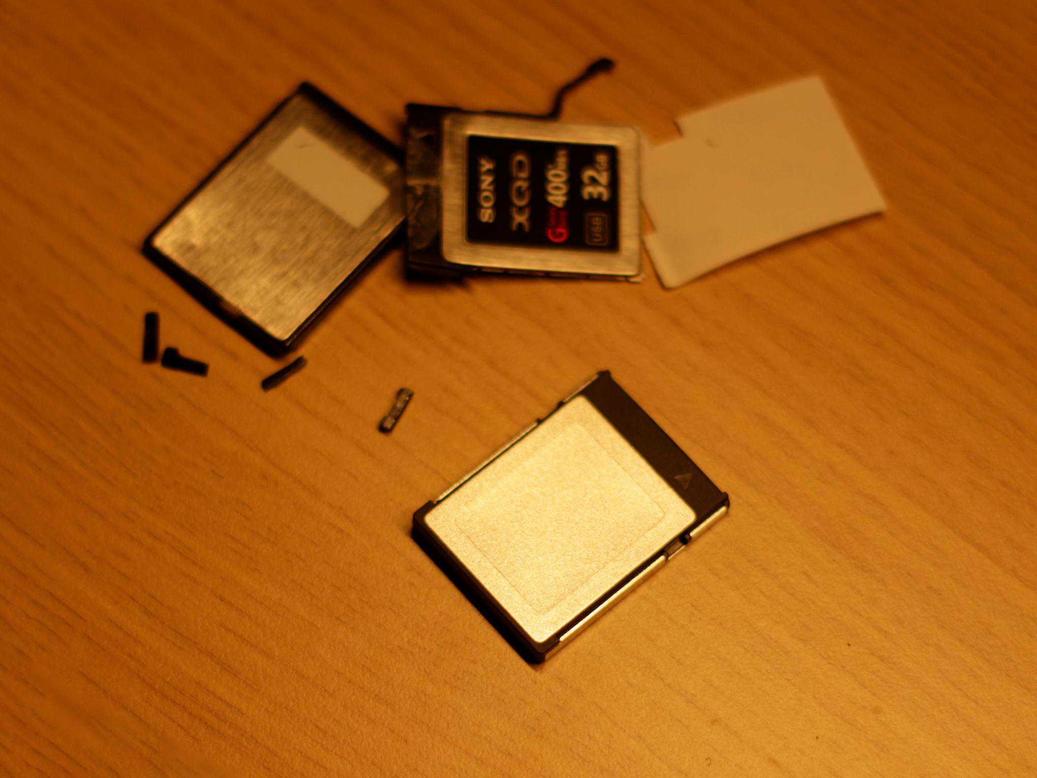 割开XQD卡心就凉了一半,卡的金手指崩了一角,难怪尼康Z6相机会读取错误。