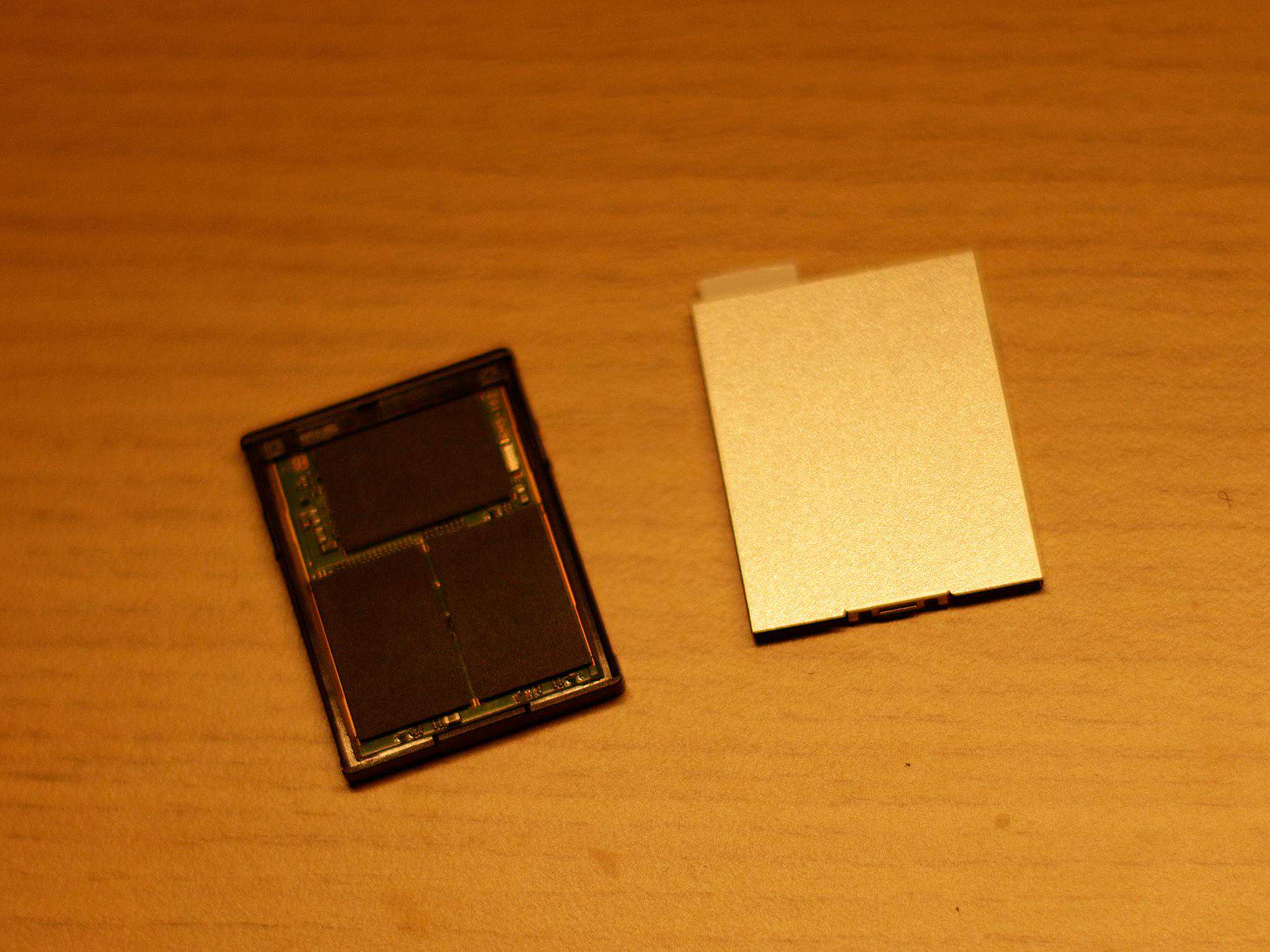 XQD卡的结构其实很简单,和msata固态硬盘很像,有主控芯片,有闪存颗粒。我的是32G容量,能看到NOSIHD主控,四颗没有标签信息的闪存颗粒。