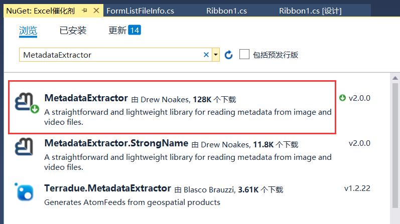 正式介绍主角,图片Exif信息的读取,就靠MetadataExtractor完成,在nuget上直接有。