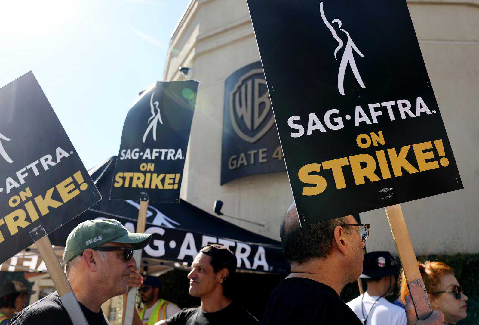 当地时间2023年9月26日,美国加州伯班克,罢工的美国演员工会成员聚集在华纳兄弟制片厂外。图源/视觉中国