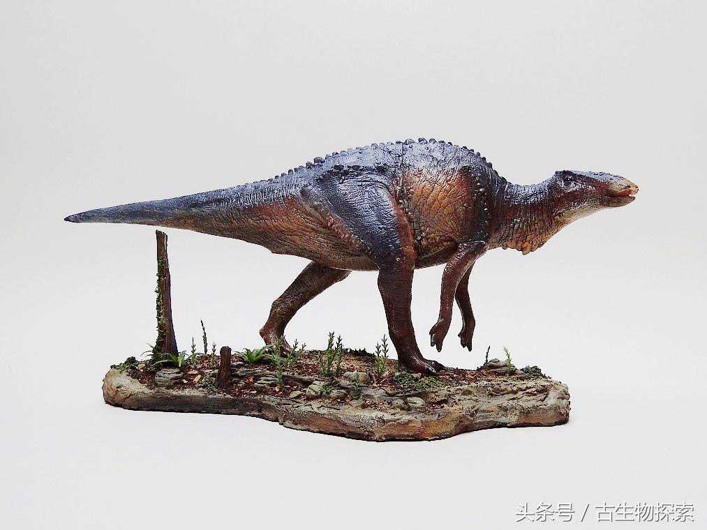 图注:年代较早的满洲龙模型,被描绘成半水生的样子。不过现在的研究表明鸭嘴龙是典型陆地生活的动物,图片来着网络