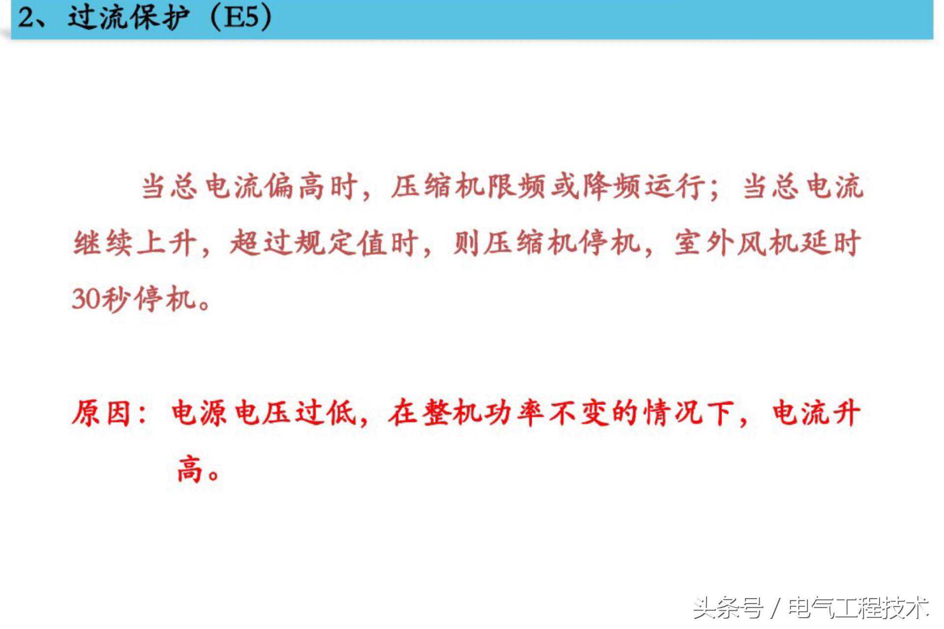 提起变频空调,相信很多的电工师傅都再熟悉不过了,的确,变频空调广泛的应用在了工业自动化控制以及家庭生活中,相对而言,变频空调更加的节能,安全,高效,相对应的,随着变频空调的普及,对电工技术人员的要求也越来越高,电工老师傅都知道,虽然说变频空调故障的排查和维修不困难,但是真正故障排查的过程中如果没有好的方法,那也是相当相当耗时的,特别是对于一些刚入门学习变频空调的电工师傅,众多的故障点简直看了就头晕,更别提故障排查了,其实变频空调的故障排查是有一定的方法的,如果方法得当会达到事半功倍的效果,今天我们就重点来看看变频空调常见的5大类14个高发性的故障点,希望可以对变频空调维修初学者提供一点帮助: