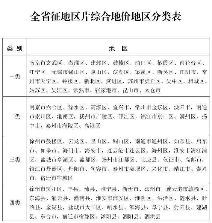 江苏省征地区片综合地价最低标准