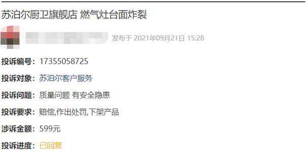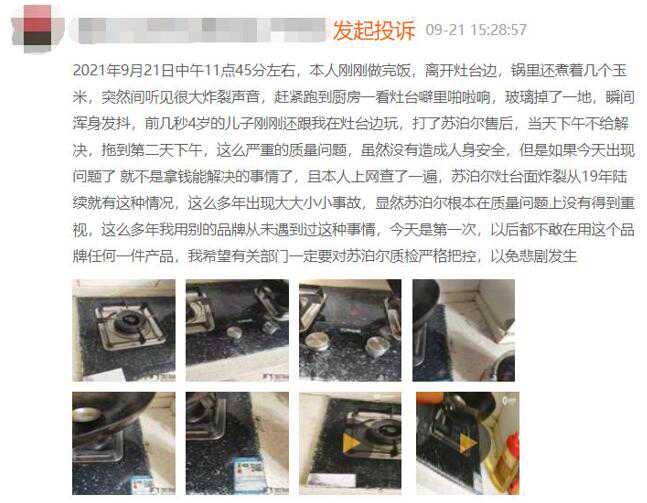 该消费者表示,上网查了一遍,发现苏泊尔灶台面炸裂从19年陆续就有这种情况,这么多年出现大大小小事故,显然苏泊尔根本在质量问题上没有得到重视,并表示以后不敢再用苏泊尔的任何一件产品。