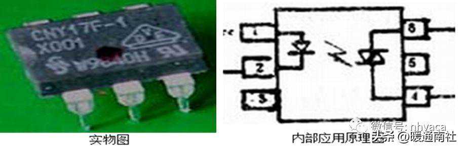 室内电机调速电路原理(见图):当在1和2加上控制信号使内部发光二极管发关,由于通过电流不一样,发光程度不一样,照射到右边的可控硅的受光程度也不一样,使得可控硅的导通角不同,因而输出也不同,所以在4和6端接上室内电机就得到不同的输出电压,用不同的输出电压控制室内机,就达到调速的目的,实现分体壁挂式空调器室内电机的高、中、低档风速输出。