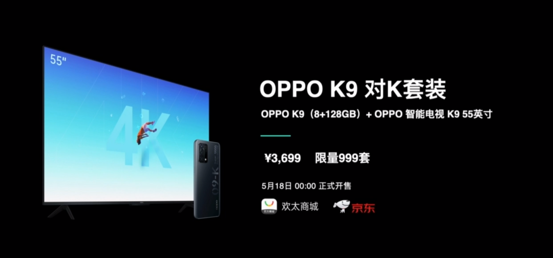 K9手机(8+128GB)+OPPO智能电视K955英寸,定价3699元。