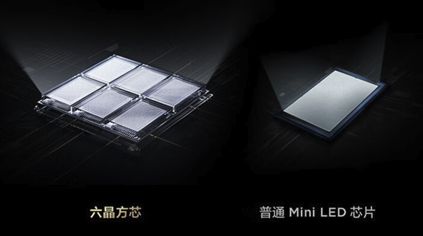 一般传统MiniLED发光芯片是由2个发光点组成的长方形,而C11GPro采用的六晶方芯发光芯片的发光点则是6个,LED芯片,亮度、能效均实现大幅提升。