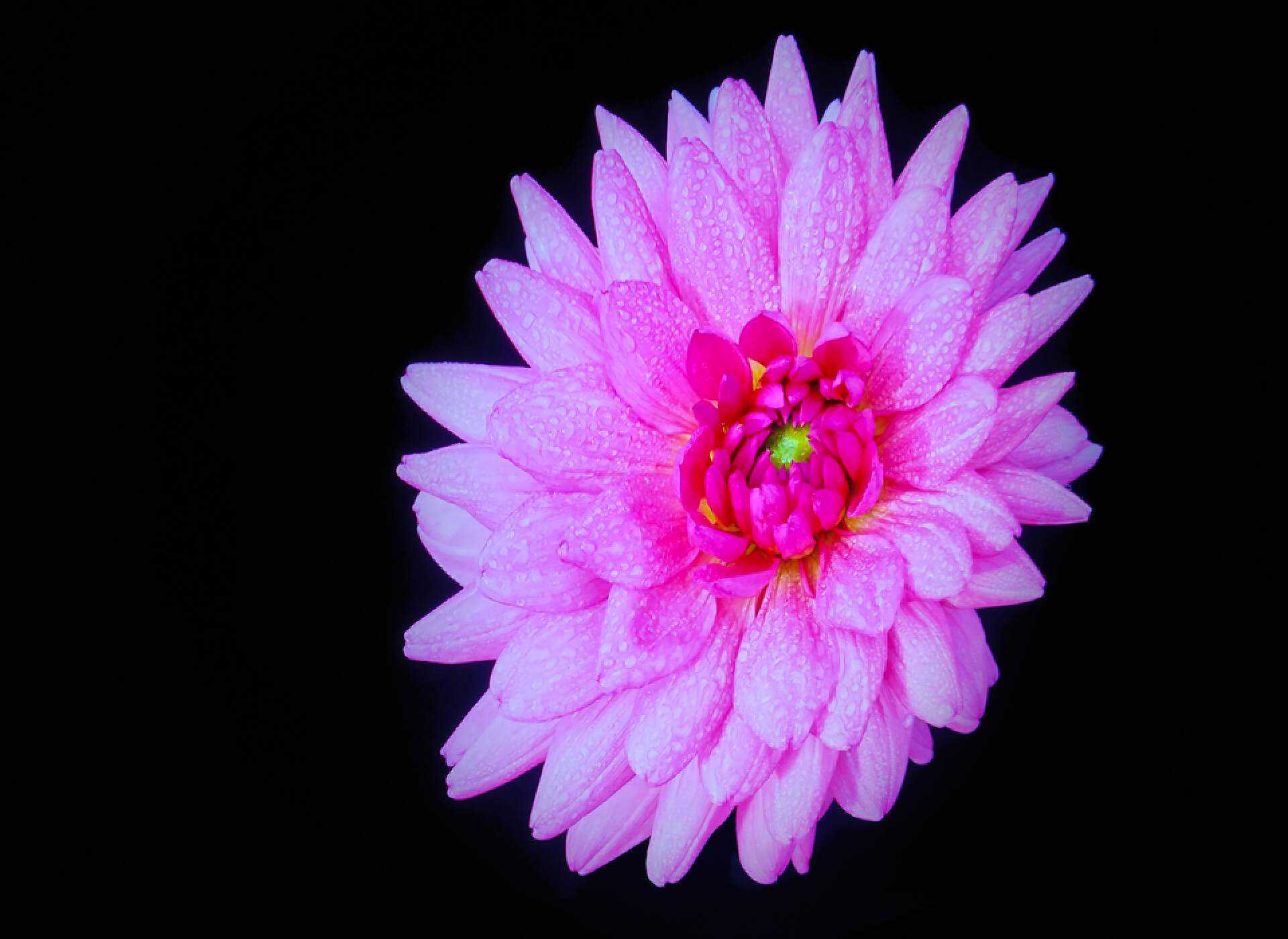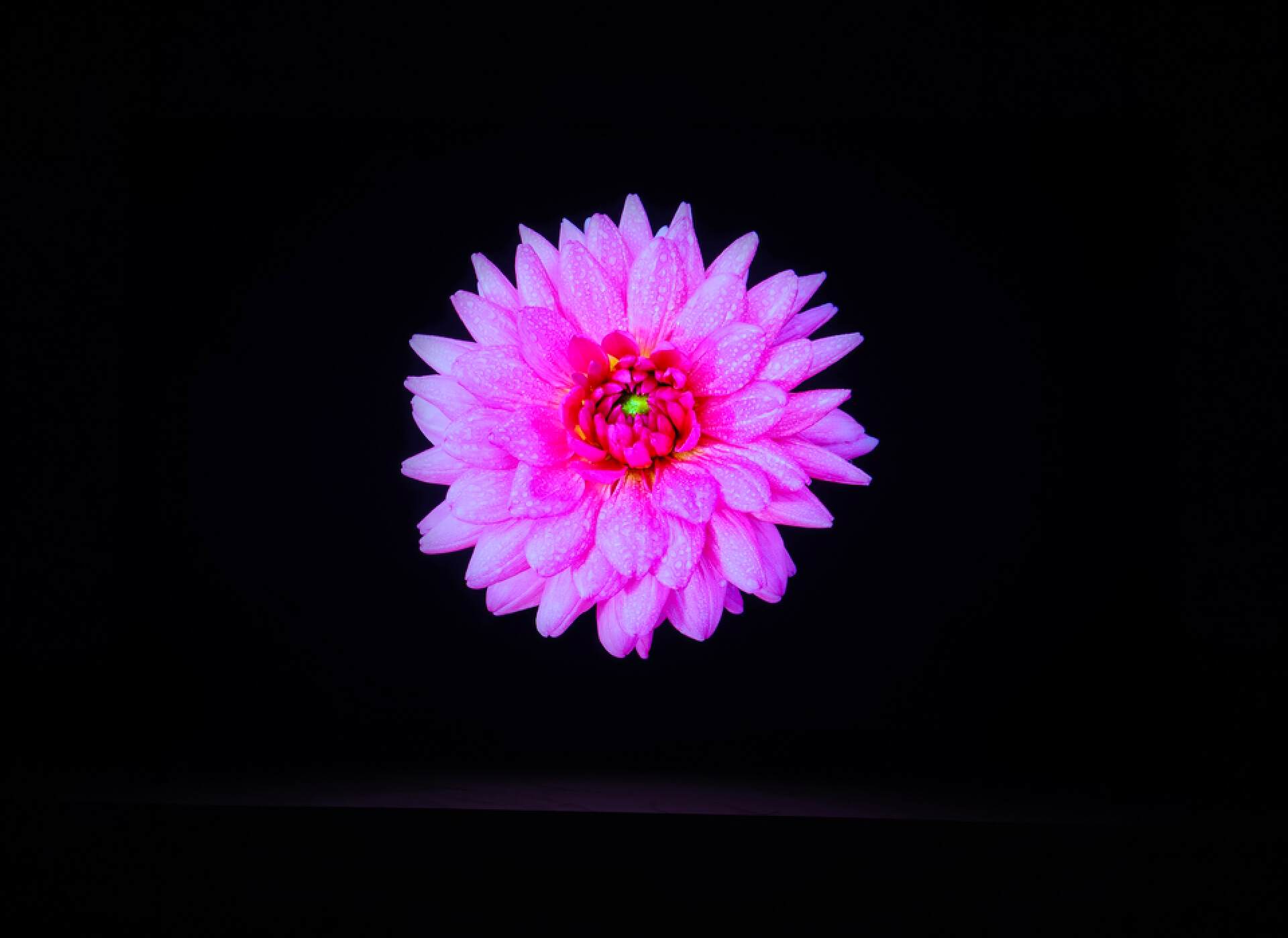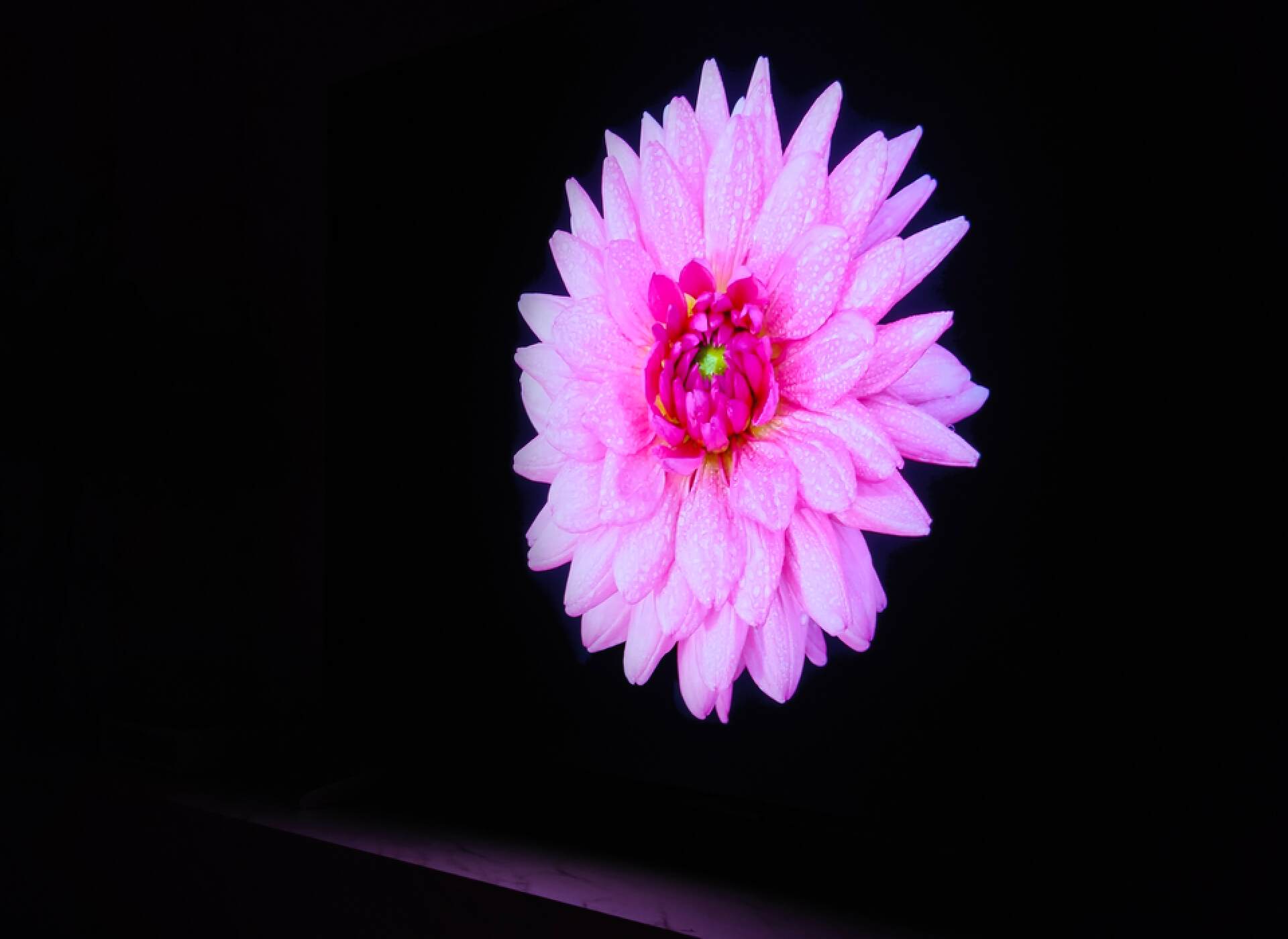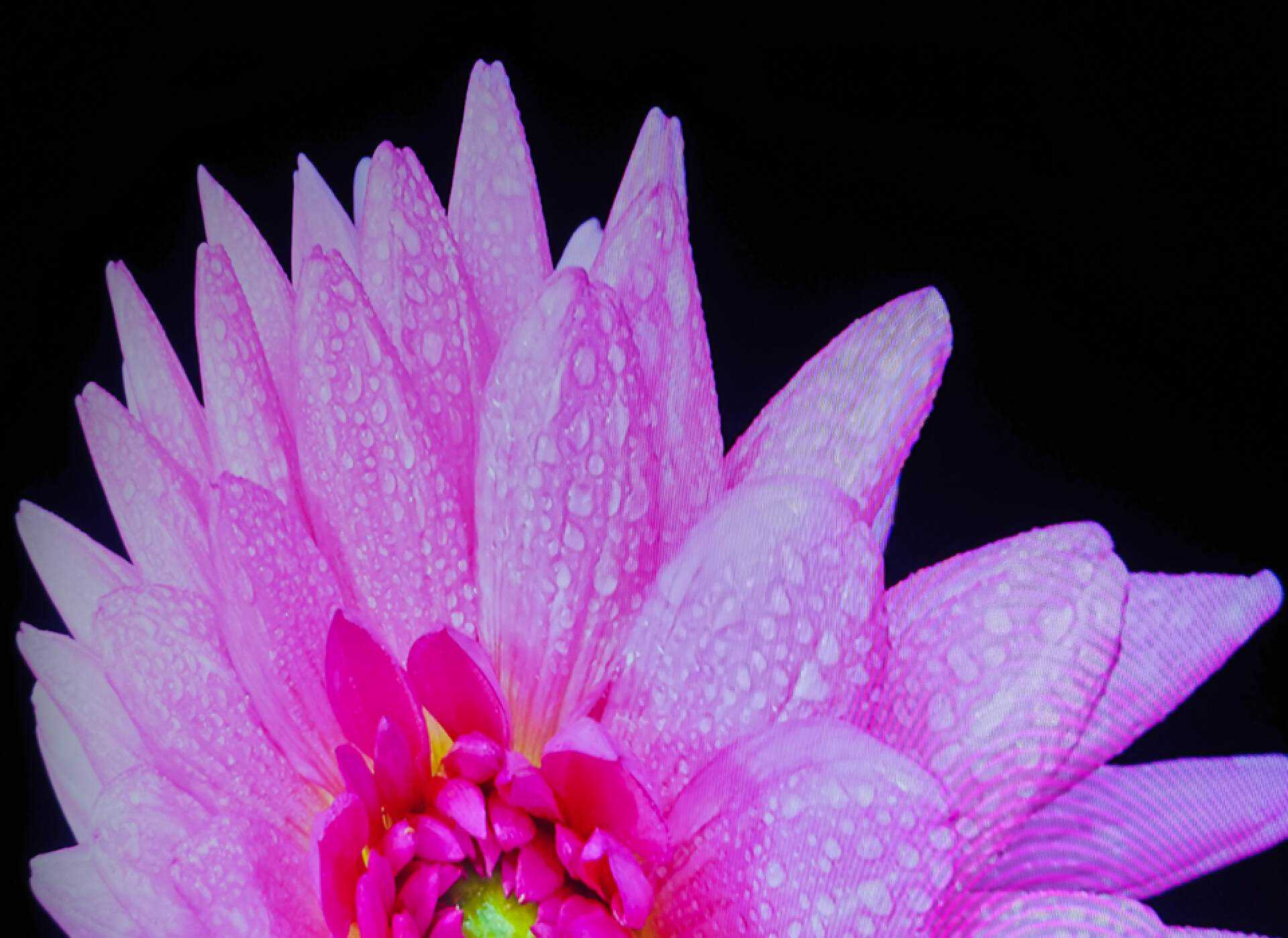 我们打开一张花瓣的图片,花瓣周围是纯黑色,这非常考验电视的控光能力,做不好,就会有明显偏灰的光晕,显得画面很脏,不纯粹。