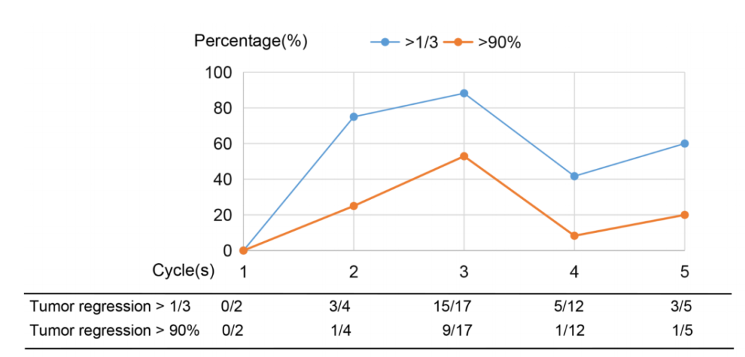 图1.根据治疗周期进行手术的患者的病理缓解情况