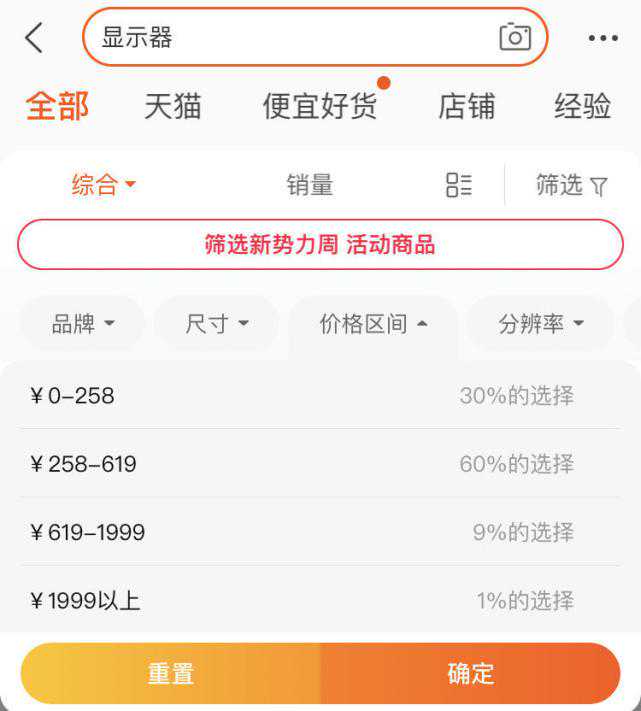 相信很多朋友不知道为什么我们这次评测选择的是千元价位的显示器。其实原因很简单,我们打开淘宝搜索显示器,可以看到90%的消费者选择的都是千元以下的显示器。