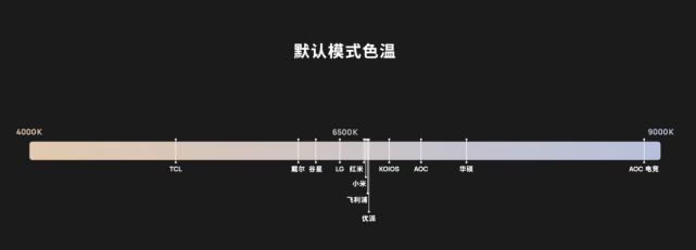 在默认状态下,12款显示器中色温最高为8800K,最低为5100K,和通用的6500K相差较多。如果你将这些显示器买回家直接用的话,可能你看到的白不是真的白。