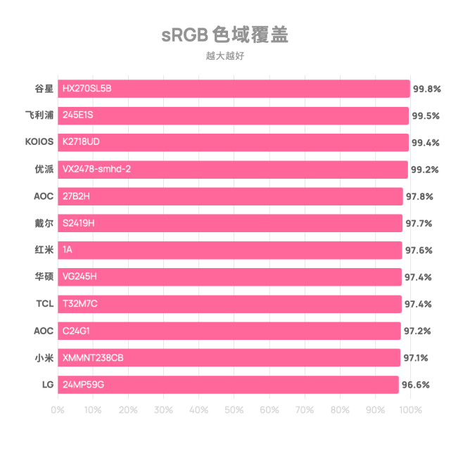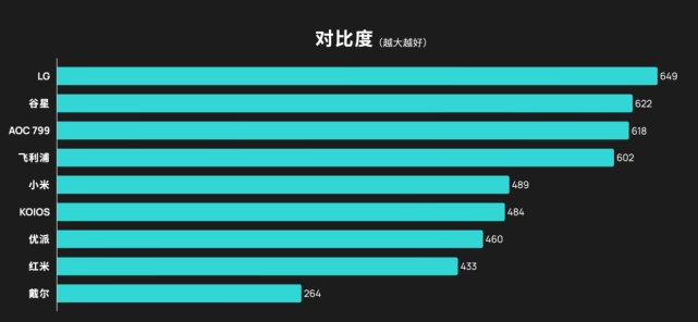 IPS显示器都宣称自己是1000:1的对比度,小米、红米和KOIOS在这方面稍欠。