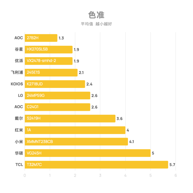 AOC27B2H的色准表现最好,数值在3以内其实在这个价位就算表现不错了。