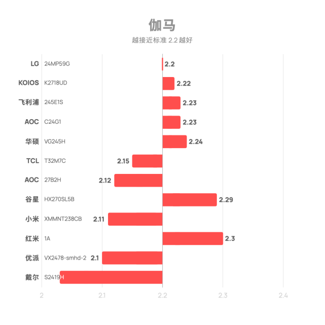我们还测试了12台显示器的伽马值,戴尔的S2419H表现最差。