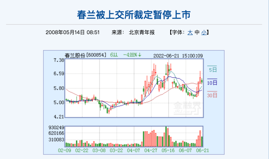 《春兰10年股价缩水10倍昔日家电龙头黯然停牌》——《IT时代周刊》