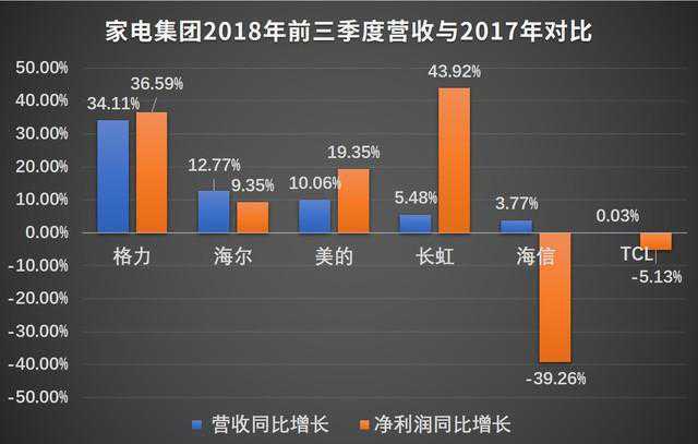 近日,格力电器、海信电器、青岛海尔、四川长虹、TCL集团、美的集团等家电巨头纷纷公布2018年前三季度业绩报告,先来看下今年家电行业的整体情况。