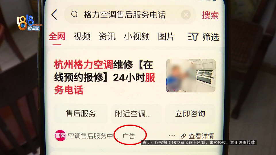当时她搜索“格力空调售后服务电话”