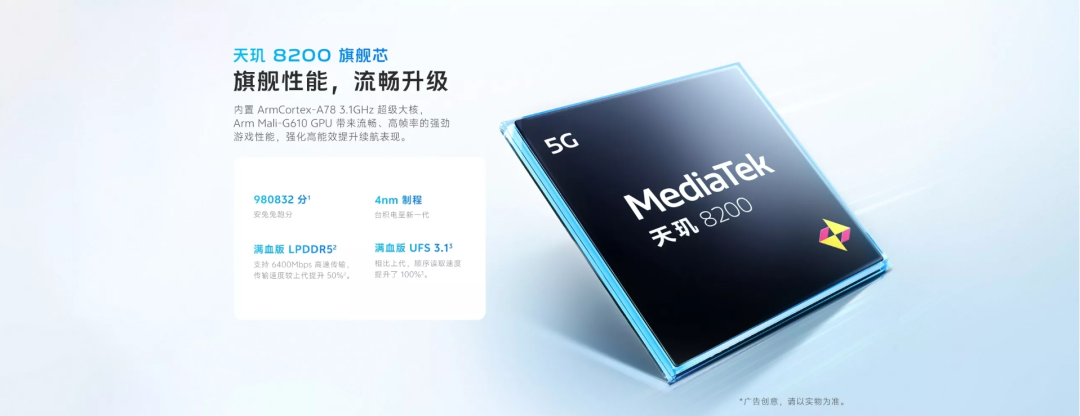 据悉,天玑8200基于台积电4nm工艺,采用八核CPU架构,包含4个Cortex-A78大核,主频最高达到3.1GHz,以及4个Cortex-A55小核,还搭载了Mali-G610六核GPU。