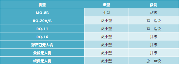另外,根据最新的公开资料,美国陆军的战术无人机体系至少还包括下表所列机型。其中MQ-8B是MQ-8FireScout的陆军型号,而其他机型都属于微小型无人机(小于20kg)。