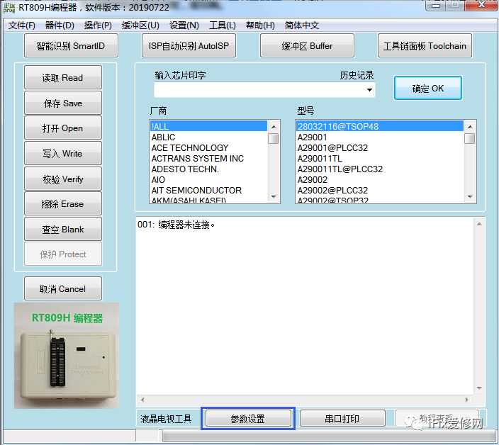 ①电脑与编程器连接,打开软件看到序列号方为连接成功;