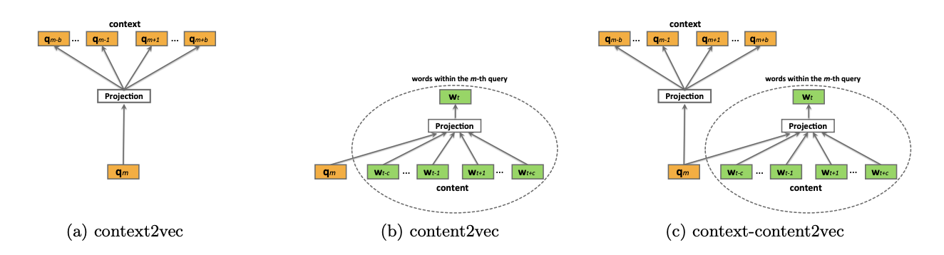 通过用户Session构建改写序列[6]:通过一个Session序列作为上下文训练Embedding表征Query(即图7c)。该方法的优点是有效的利用了用户自行换词的限制条件,挖掘覆盖率和准确率都相对更高。
